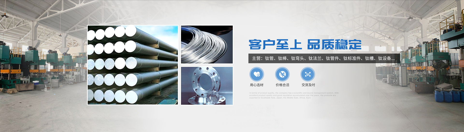 本公司的主營(yíng)產(chǎn)品鈦制品有,鈦管,鈦棒,鈦彎頭,鈦法蘭,鈦管件,鈦標(biāo)準(zhǔn)件,鈦槽,鈦設(shè)備,鈦沖壓彎頭等。所生產(chǎn)各種規(guī)格的鈦制品主要運(yùn)用于化工、電鍍、石油、電子、環(huán)保、海洋等領(lǐng)域"以質(zhì)量求生存,靠服務(wù)求發(fā)展“為宗旨,客戶(hù)的滿(mǎn)意是我們的追求,歡迎各界用戶(hù)來(lái)函來(lái)電,傳真,洽談貿(mào)易。